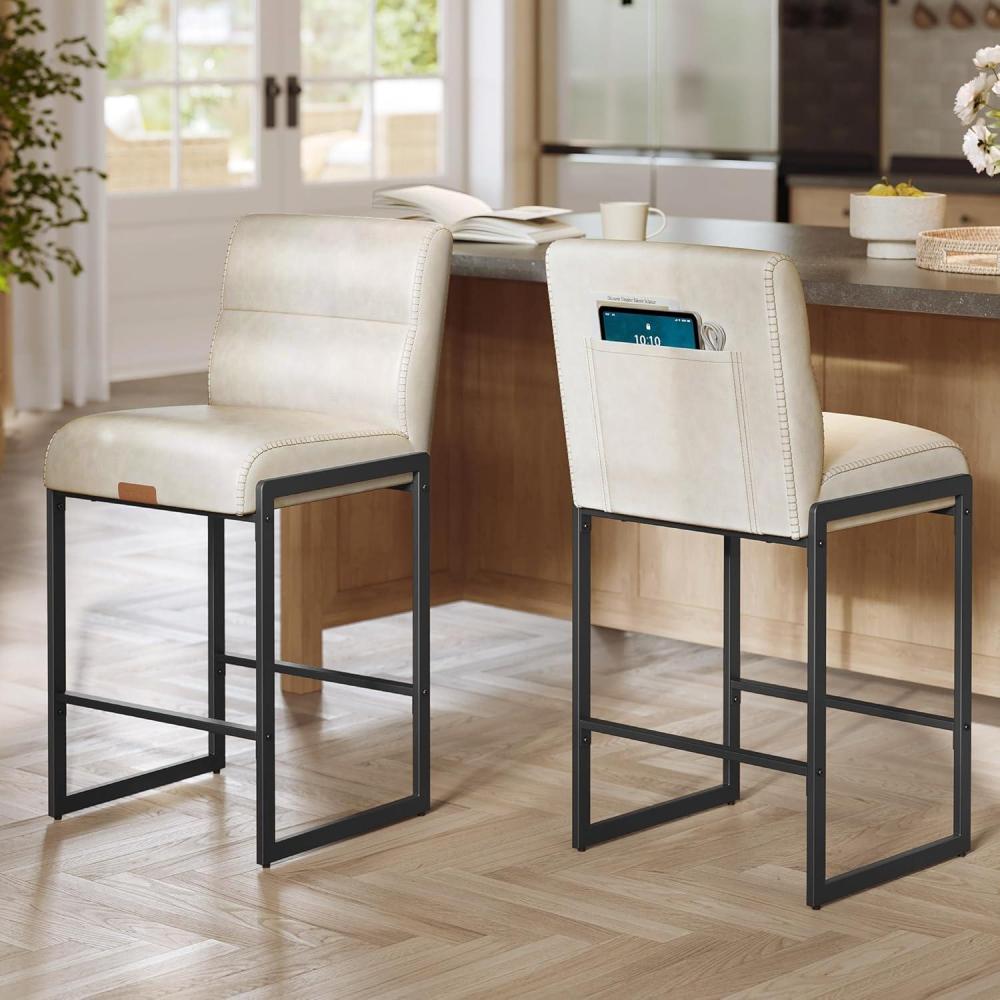 VASAGLE EKHO Collection - Bar Stools Set of 4, Counter Height Stools with Backs, 26.4-Inch Barstools Chairs, Synthetic Leather with Stitching, Mid-Century Modern, Dining Kitchen Island, Ink Black(Cream White)