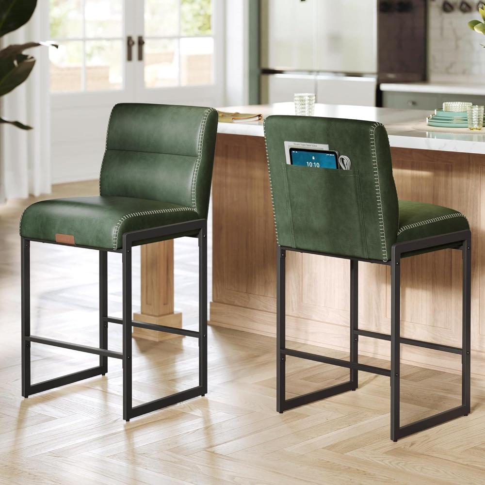 VASAGLE EKHO Collection - Bar Stools Set of 4, Counter Height Stools with Backs, 26.4-Inch Barstools Chairs, Synthetic Leather with Stitching, Mid-Century Modern, Dining Kitchen Island, Ink Black(Forest Green)