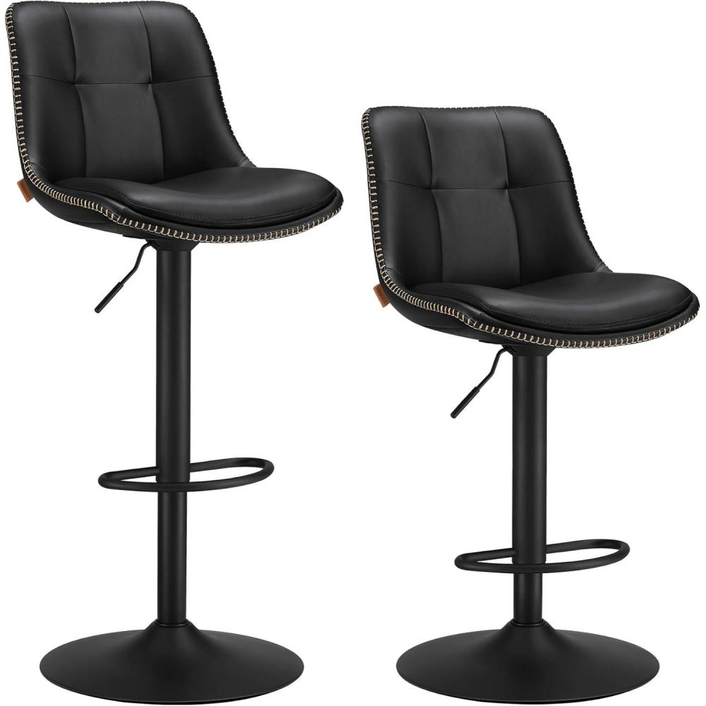 VASAGLE Bar Stools, Set of 2 Swivel Bar Chairs, Adjustable Height, Quilt, Synthetic Leather Kitchen Stools with Back and Footrest, Dining Room, Counter, Steel, Ink Black ULJB095B01(Ink Black)
