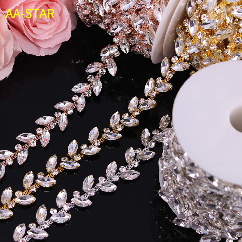 1 Yard Crystal Rhinestone Trimming On Roll Motif Strass Hot Fix Rhinestone Tape For Dresses