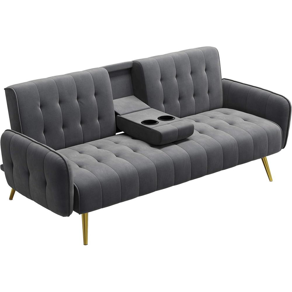 VASAGLE Sofa Bed, Convertible Couch with 2 Cup Holders and Removable Armrests, for Compact Living Space Apartment Dorm Office, 72 x 33.9 x 30.7 Inches, Gray(Grey)
