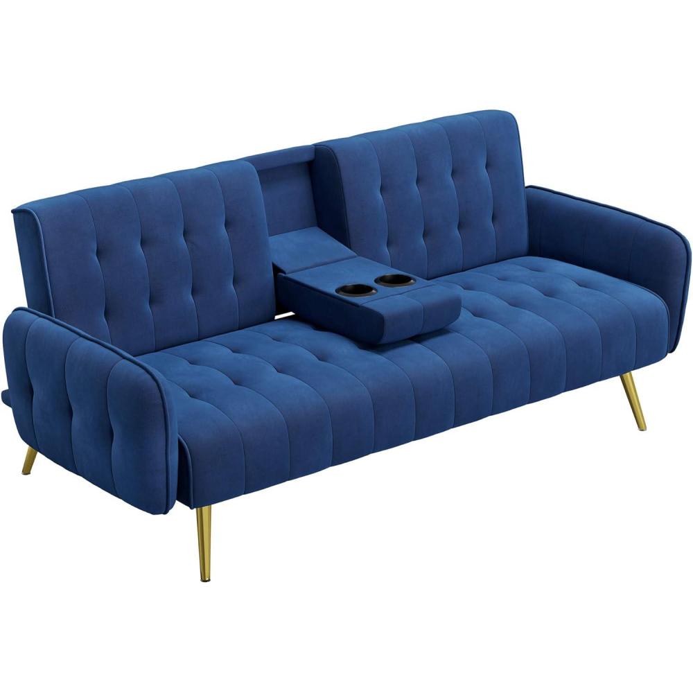 VASAGLE Sofa Bed, Convertible Couch with 2 Cup Holders and Removable Armrests, for Compact Living Space Apartment Dorm Office, 72 x 33.9 x 30.7 Inches, Gray(Blue)
