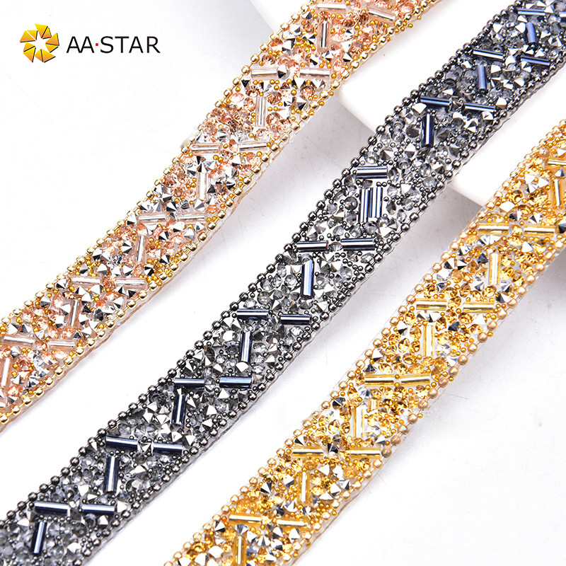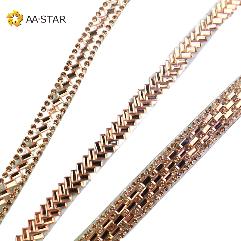 Fashion handmade 1.5cm rose gold rhinestone crystal trim
