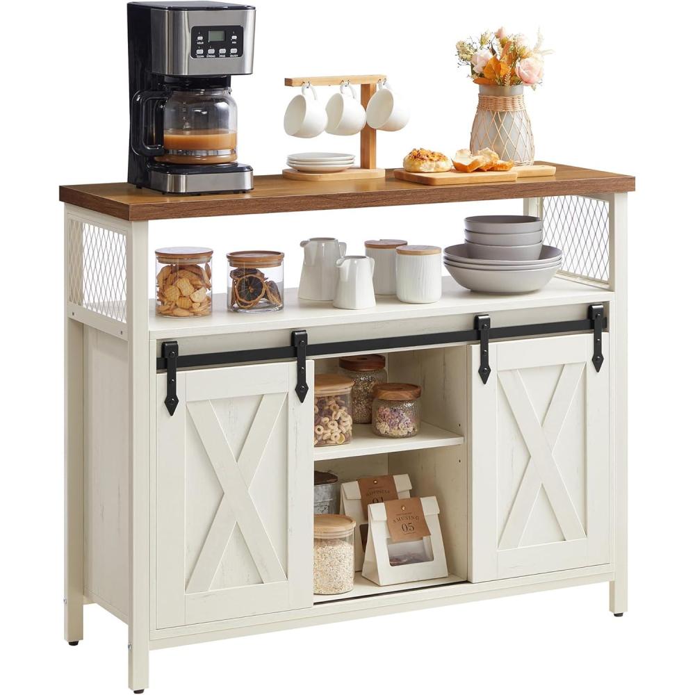 VASAGLE Buffet Cabinet, Coffee Bar Storage Cabinet, Sideboard with 1 Sliding Barn Door, Adjustable Shelves, 11.8 x 27.6 x 31.5 Inches, for Living Room, Camel Brown and Ink Black ULSC089B50(Rustic White and Honey Brown)