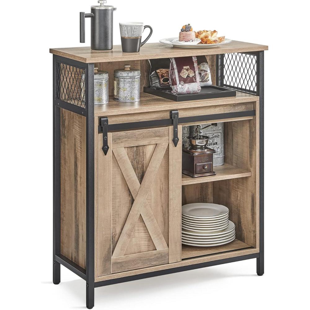 VASAGLE Buffet Cabinet, Coffee Bar Storage Cabinet, Sideboard with 1 Sliding Barn Door, Adjustable Shelves, 11.8 x 27.6 x 31.5 Inches, for Living Room, Camel Brown and Ink Black ULSC089B50(Rustic Brown and Ink Black)