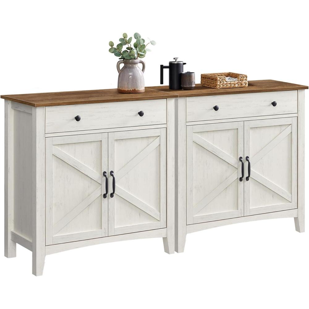 VASAGLE Buffet Cabinet Set of 2, Sideboard Cabinets with Storage and Drawer, with Doors, Height Adjustable Shelf, Farmhouse Style, for Living Room, Kitchen, Rustic White and Honey Brown(Rustic White Honey Brown)