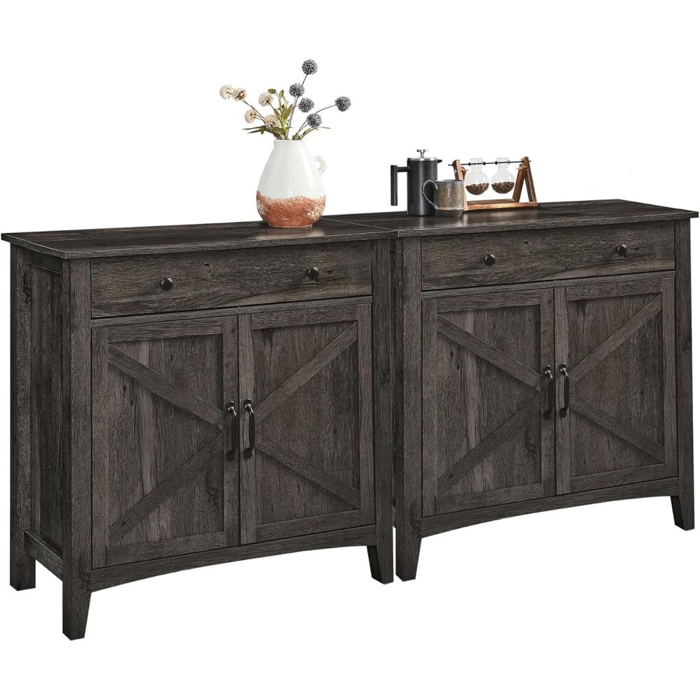 VASAGLE Buffet Cabinet Set of 2, Sideboard Cabinets with Storage and Drawer, with Doors, Height Adjustable Shelf, Farmhouse Style, for Living Room, Kitchen, Rustic White and Honey Brown(Stone Gray)