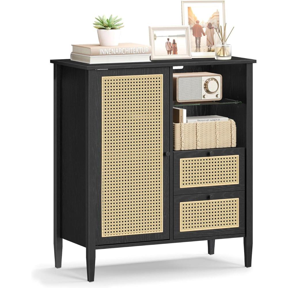 VASAGLE Buffet Cabinet with Storage, Sideboard Storage with Drawers, Doors, Adjustable Shelf, Fluted Drawer Front, Accent Cabinet, for Living Room, Modern, Cloud White UBBC651W01(Ink Black)