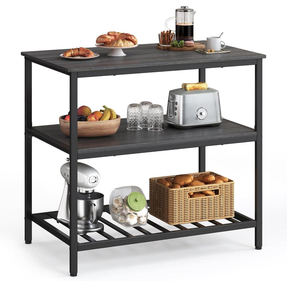 VASAGLE Kitchen Island with 3 Shelves, 47.2 Inches Width Kitchen Shelf with Large Worktop, Stable Steel Structure, Industrial, Easy to Assemble, Rustic Brown and Black UKKI01BX(Greige Black)