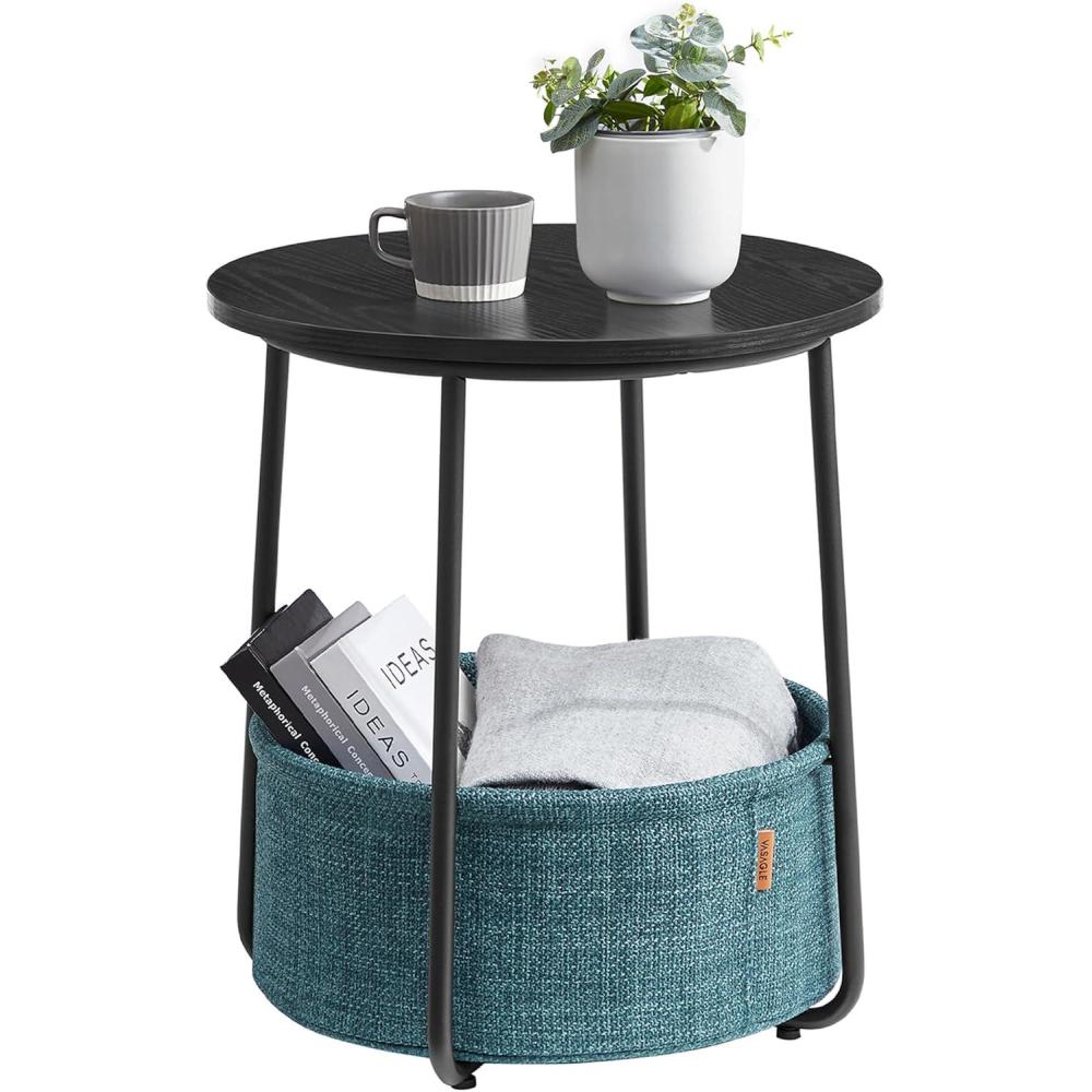 VASAGLE LILEA Collection – Small Round Side End Table, Modern Nightstand with Fabric Basket, Forest Green and Cream White ULET223C80(Ebony Black Turquoise Blue)