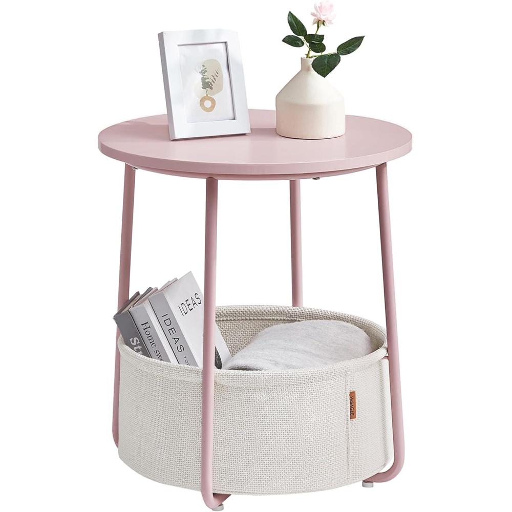 VASAGLE LILEA Collection – Small Round Side End Table, Modern Nightstand with Fabric Basket, Forest Green and Cream White ULET223C80(Jelly Pink Cream White)