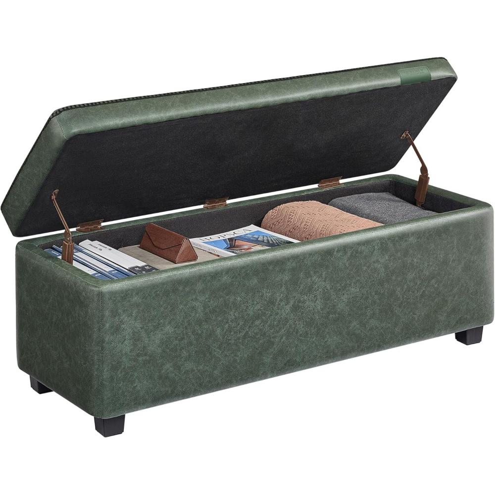 VASAGLE EKHO Collection – Storage Ottoman Bench, Entryway Bedroom Bench, 25 Gallons, Synthetic Leather with Stitching, Mid-Century Modern, Safety Hinges, Loads 660 lb, Ink Black ULOM075B01(Forest Green)