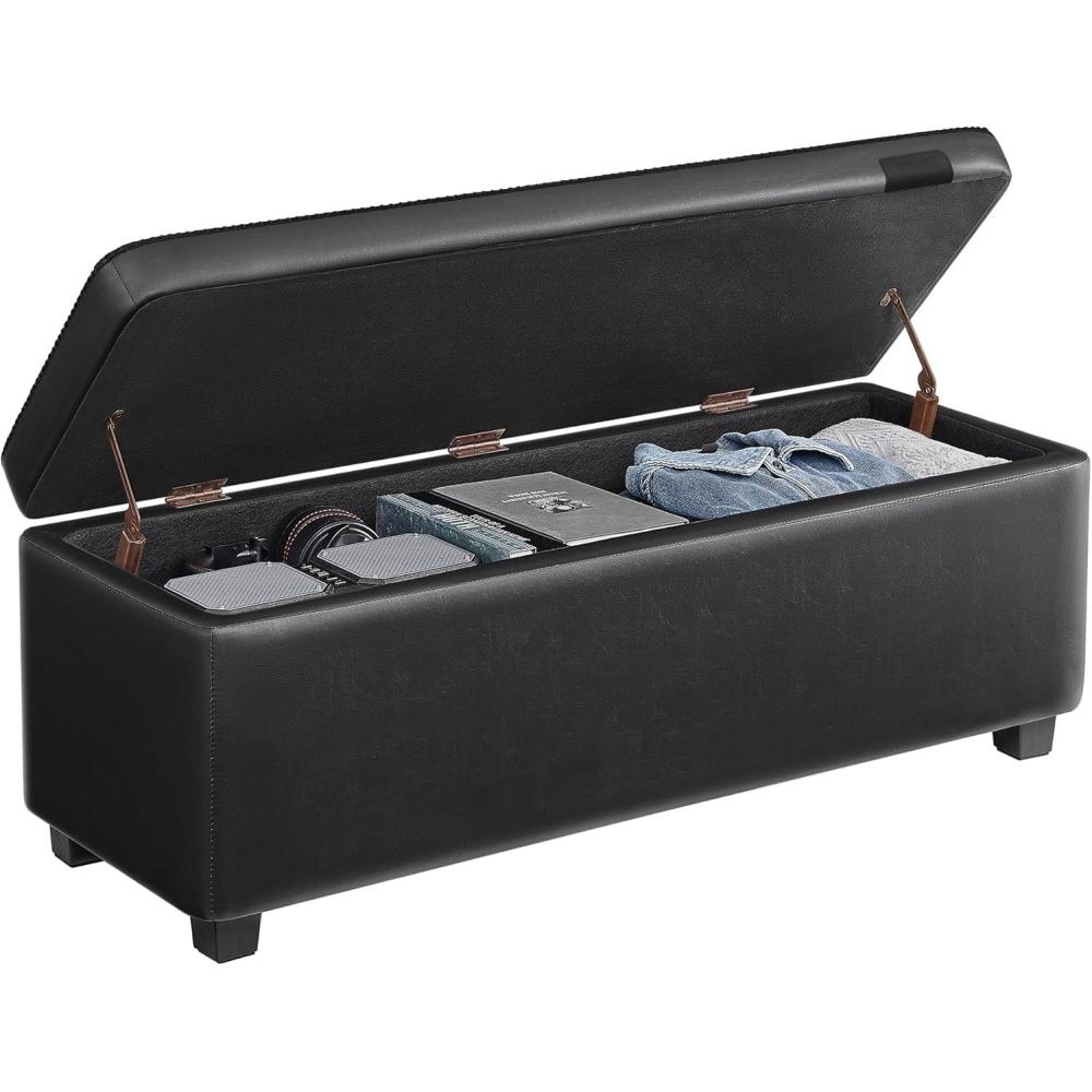 VASAGLE EKHO Collection – Storage Ottoman Bench, Entryway Bedroom Bench, 25 Gallons, Synthetic Leather with Stitching, Mid-Century Modern, Safety Hinges, Loads 660 lb, Ink Black ULOM075B01(Ink Black)