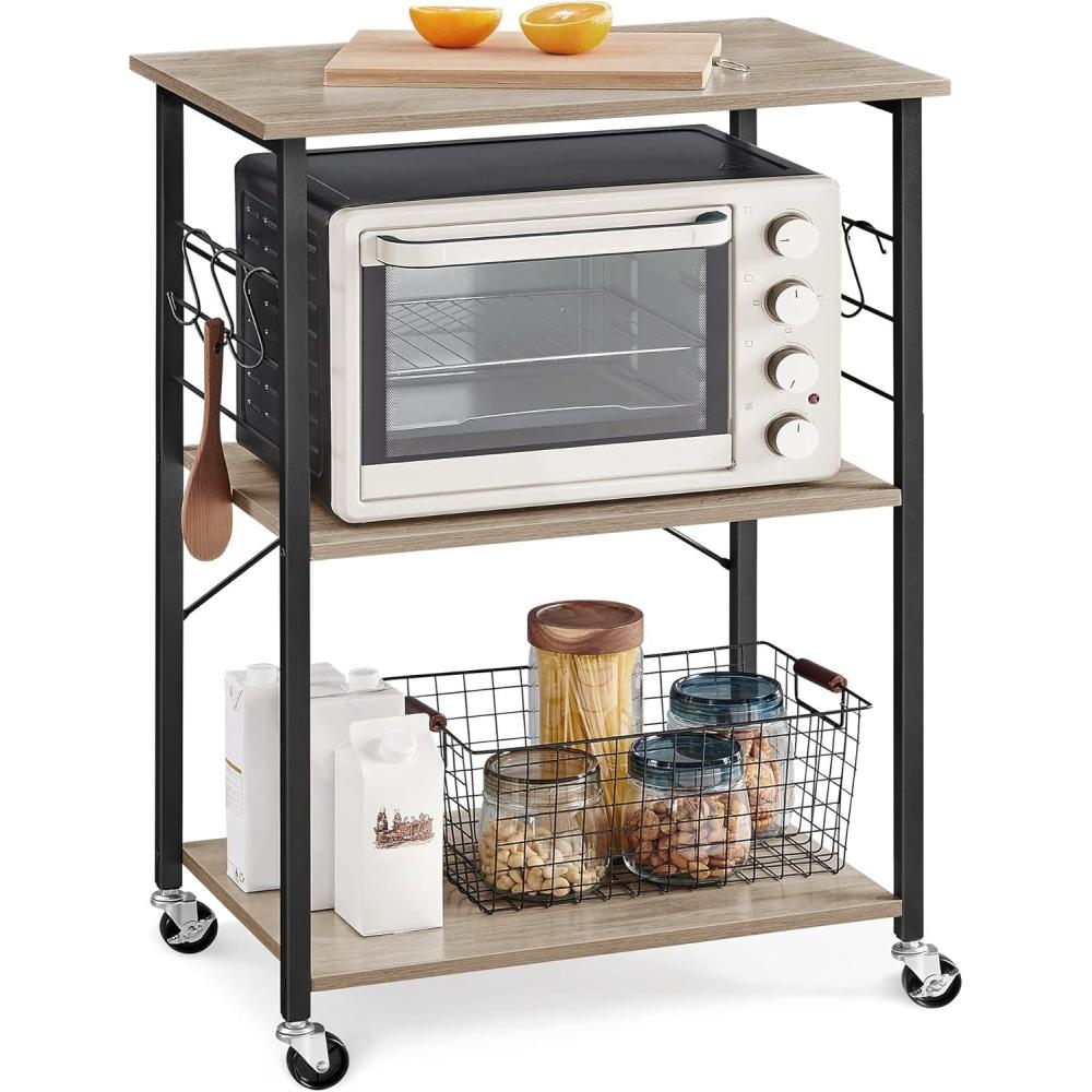 VASAGLE BRYCE Serving Cart, 3-Tier Kitchen Utility Cart on Wheels with Storage, for Living Room, Accent Furniture with Steel Frame, Industrial, Rustic Brown and Ink Black ULRC78X(Heather Greige Ink Black)