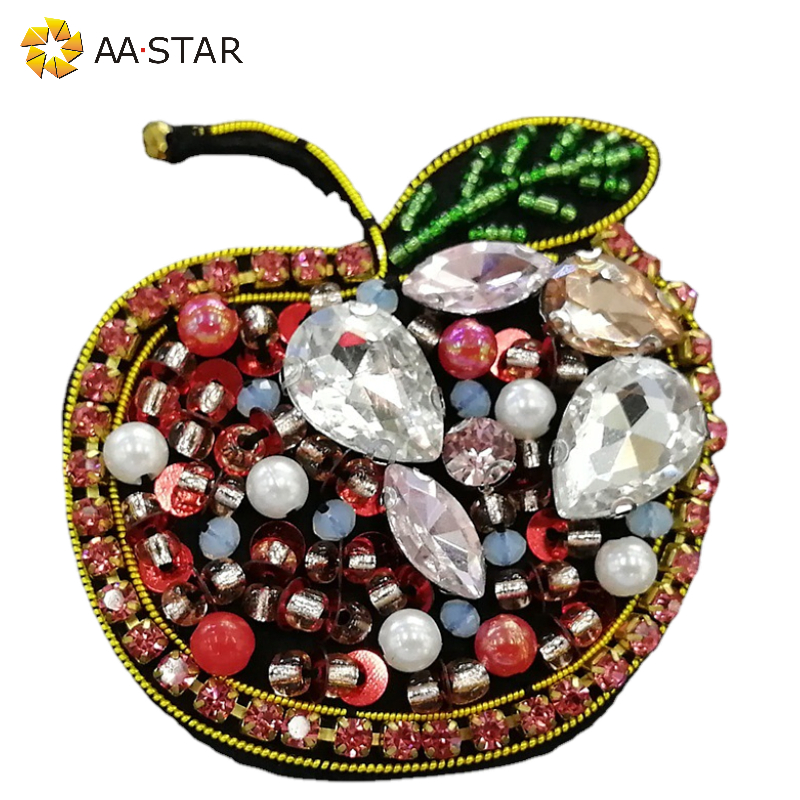 Apple 3d handmade beaded rhinestone patches sew on