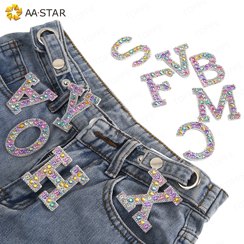 A-Z bling hotfix crystal letter jean patches iron on