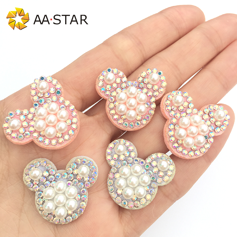 Bear design small sew on pearl rhinestone patch applique
