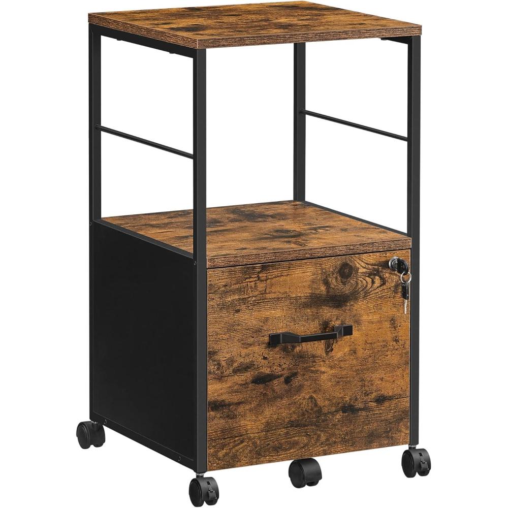 VASAGLE 3-Drawer Vertical File Cabinet, Filing Cabinet for Home Office, Printer Stand, with 3 Lockable Drawers, Adjustable Hanging Rail, for A4 and Letter-Size Files, Ink Black UOFC055B16(Rustic Brown Ink Black)