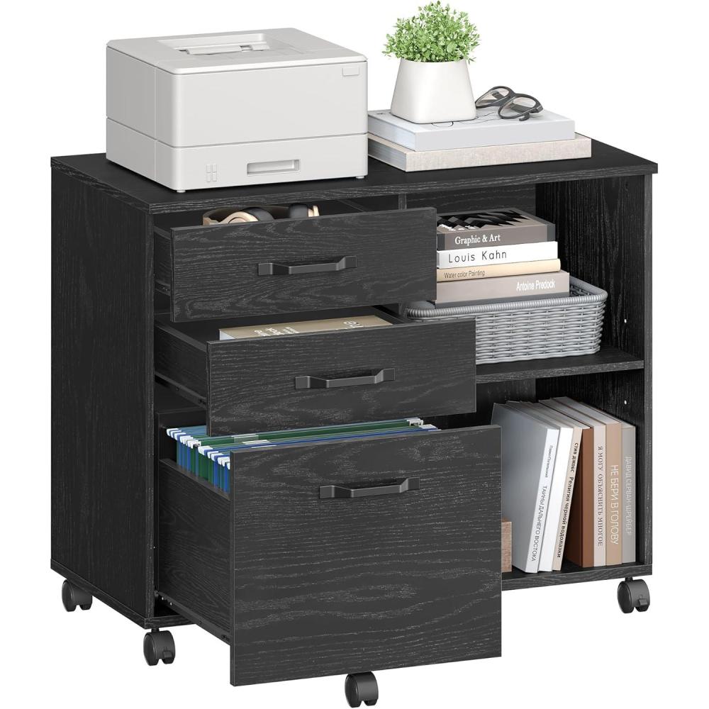 VASAGLE 3-Drawer Vertical File Cabinet, Filing Cabinet for Home Office, Printer Stand, with 3 Lockable Drawers, Adjustable Hanging Rail, for A4 and Letter-Size Files, Ink Black UOFC055B16(Black With Wood Grain)