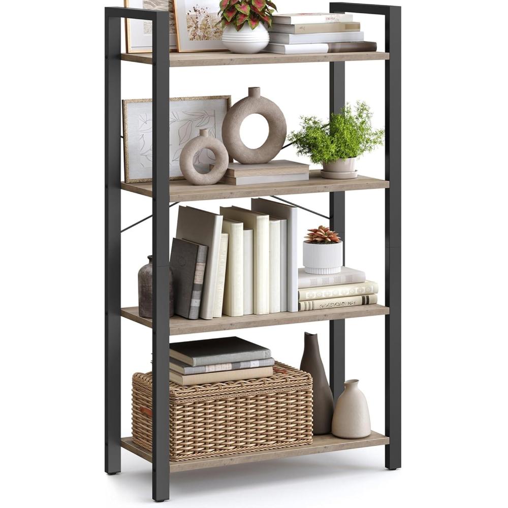 VASAGLE 4-Tier Bookshelf, Bookcase with Steel Frame, Book Shelf for Living Room, Home Office, Study, 11.8 x 26 x 47 Inches, Industrial Style, Rustic Brown and Ink Black ULLS60BX(Heather Greige Ink Black)