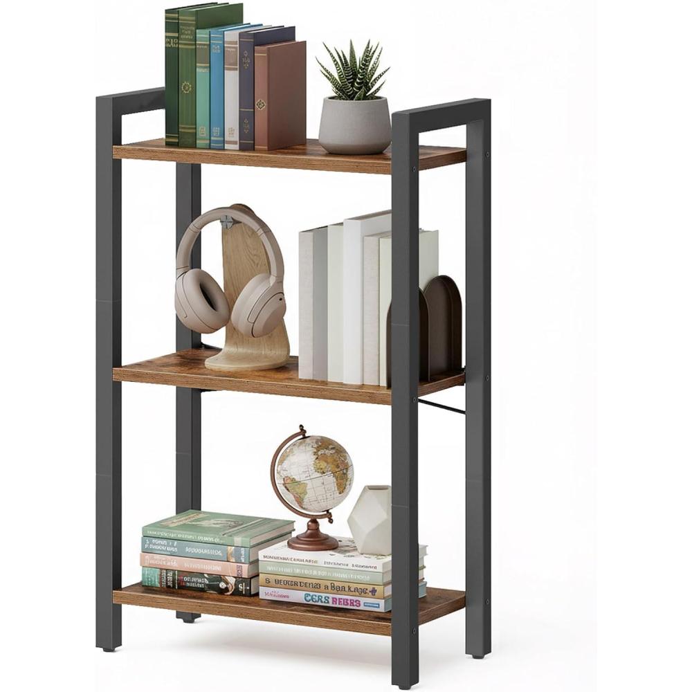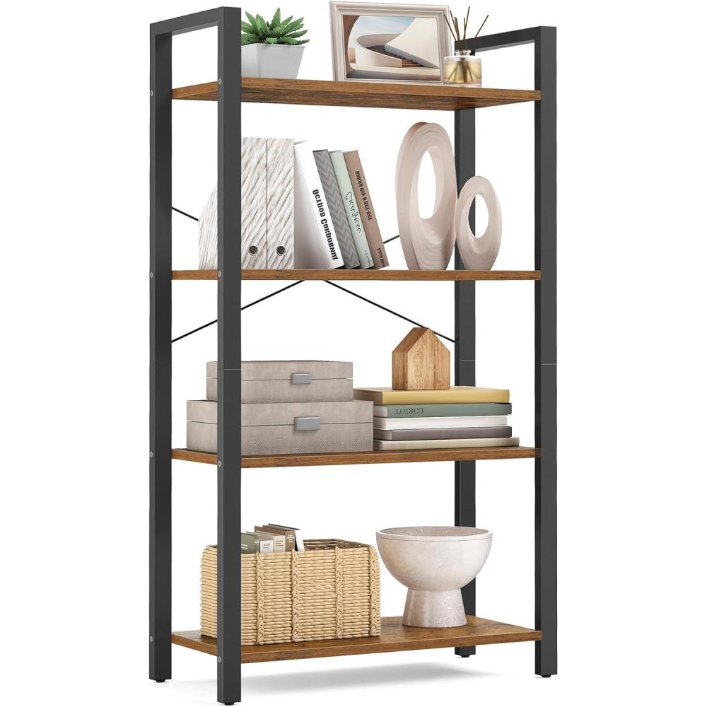 VASAGLE 4-Tier Bookshelf, Bookcase with Steel Frame, Book Shelf for Living Room, Home Office, Study, 11.8 x 26 x 47 Inches, Industrial Style, Rustic Brown and Ink Black ULLS60BX(Rustic Brown Ink Black)