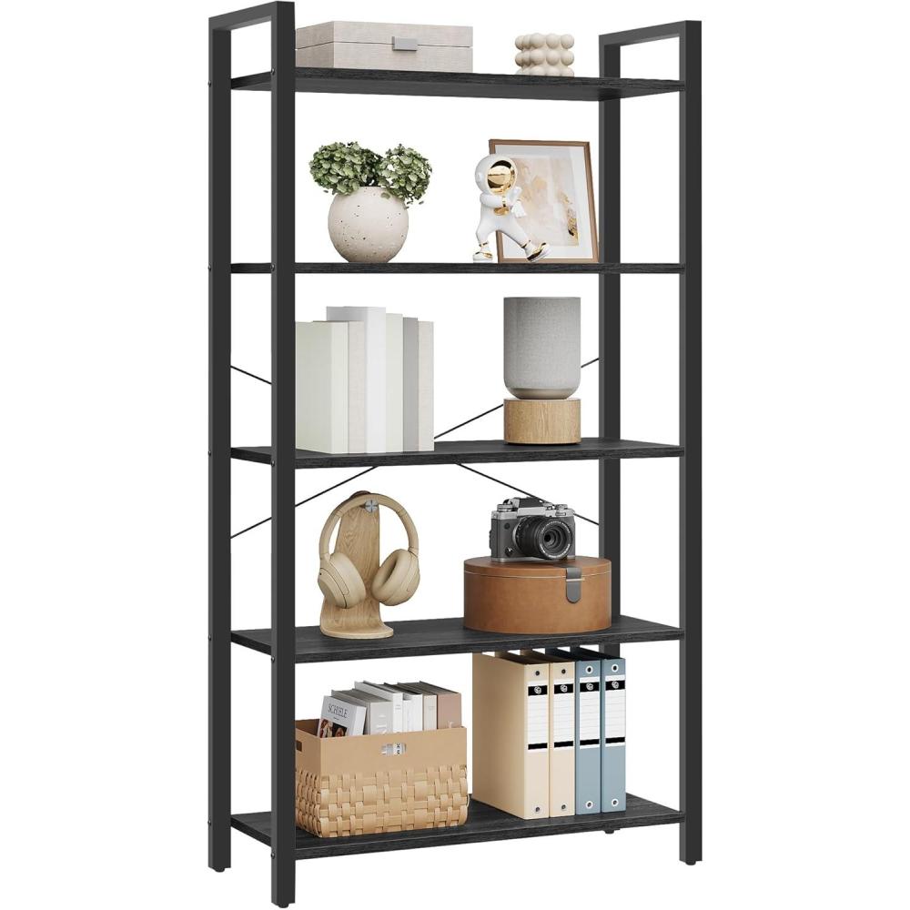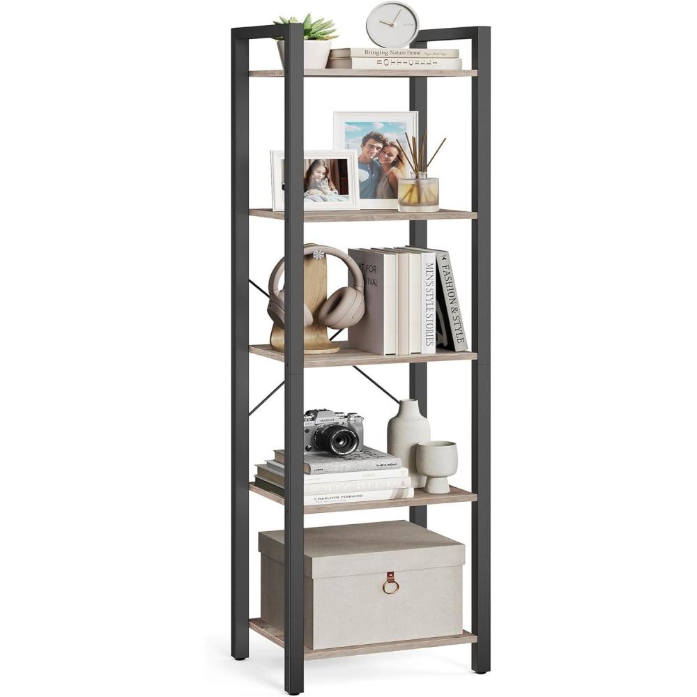 VASAGLE 5-Tier Bookshelf, Book Shelf, Industrial Bookcase, with Steel Frame, for Living Room, Home Office, Bedroom, 9.4 x 24.4 x 65 Inches, Greige and Black ULLS025B02(Camel Brown Black)