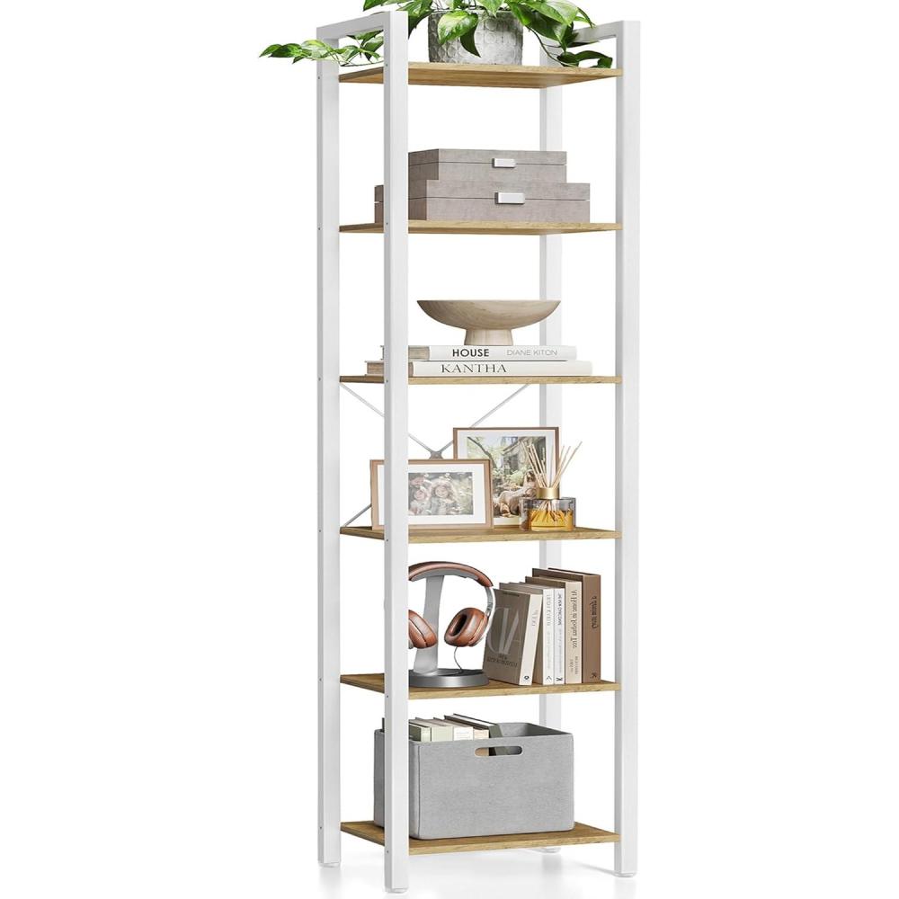 VASAGLE 4-Tier Bookshelf, Bookcase with Steel Frame, Book Shelf for Living Room, Home Office, Study, 9.4 x 15.7 x 42 Inches, Industrial Style, Rustic Brown and Ink Black ULLS099B01(Honey Brown Cloud White)