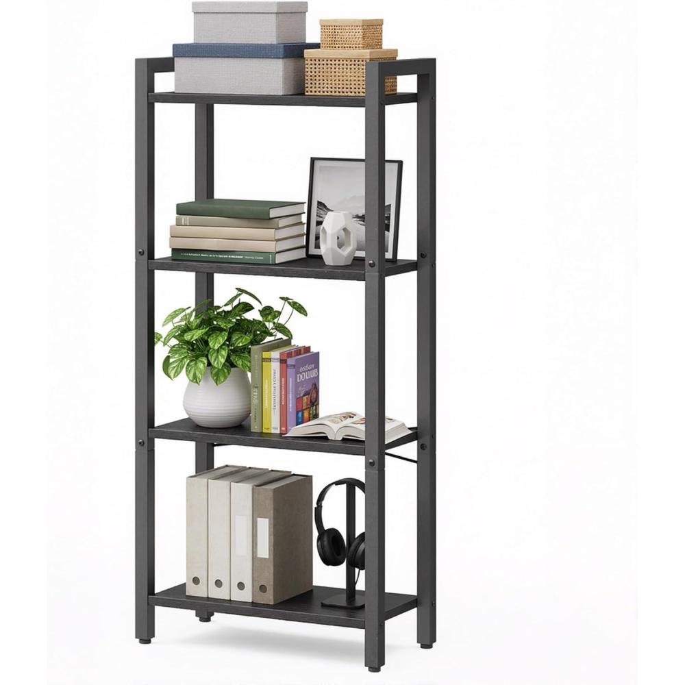 VASAGLE 4-Tier Bookshelf, Bookcase with Steel Frame, Book Shelf for Living Room, Home Office, Study, 11.8 x 26 x 47 Inches, Industrial Style, Rustic Brown and Ink Black ULLS60BX(Ebony Black Ink Black)