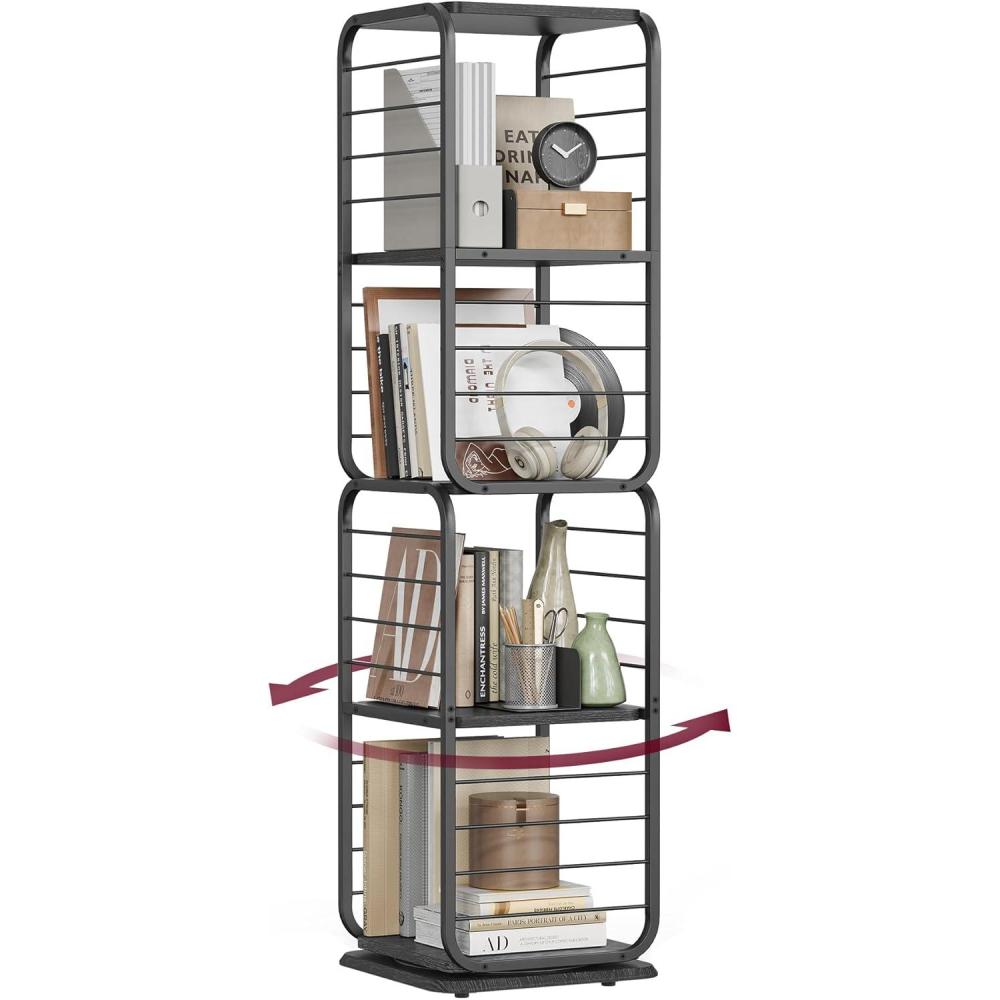 VASAGLE 4-Tier Rotating Bookshelf, Bookcase with Bookends for Small Spaces, Corner Shelf, Steel Frame, Dove Grey ULLS127G36(Black)