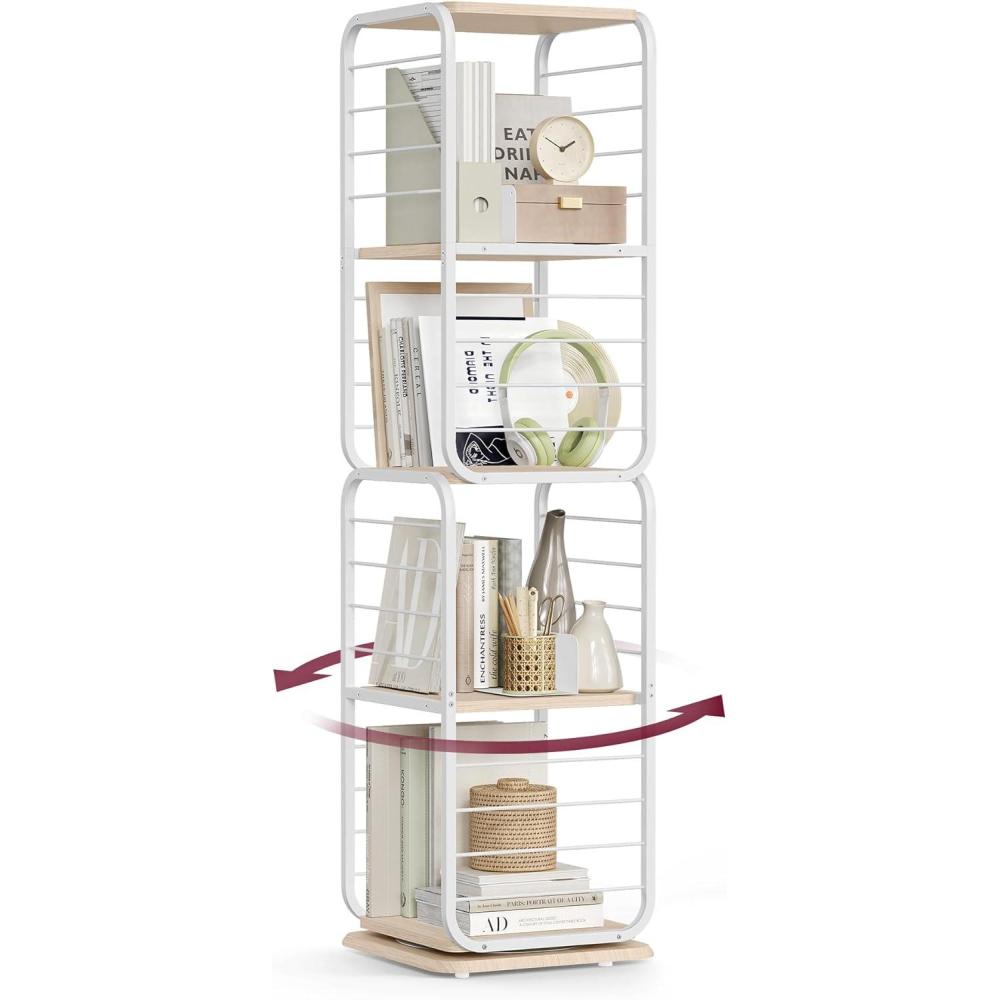 VASAGLE 4-Tier Rotating Bookshelf, Bookcase with Bookends for Small Spaces, Corner Shelf, Steel Frame, Dove Grey ULLS127G36(Cloud White)