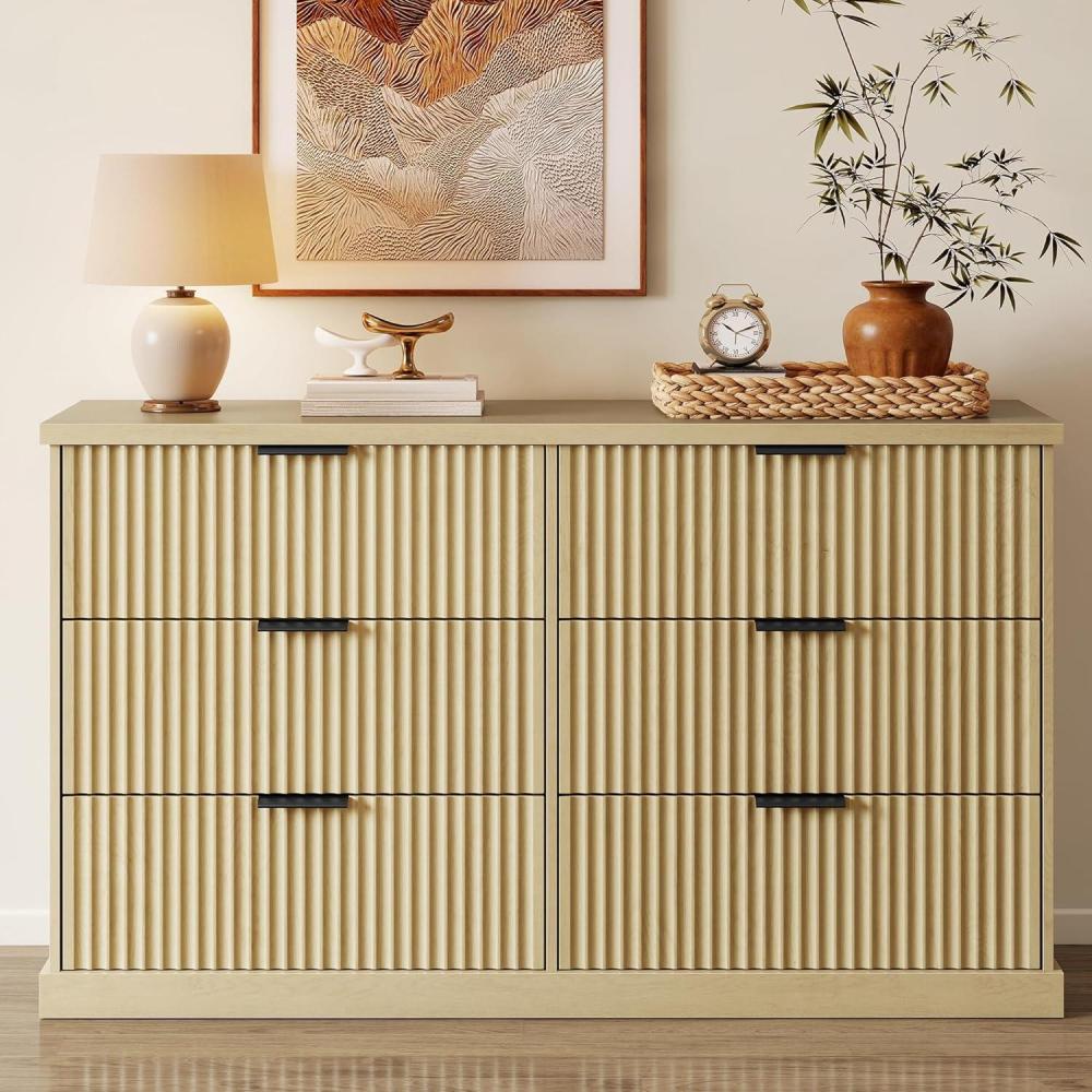 VASAGLE MAXE Collection – 6-Drawer Double Dresser for Bedroom, 54.2-Inch Wide Chest of Drawers, Fluted Panels, Mid Century Modern Storage Dresser, TV Stand for Living Room, Oak Beige ULTS662YC01S(Oak Beige)