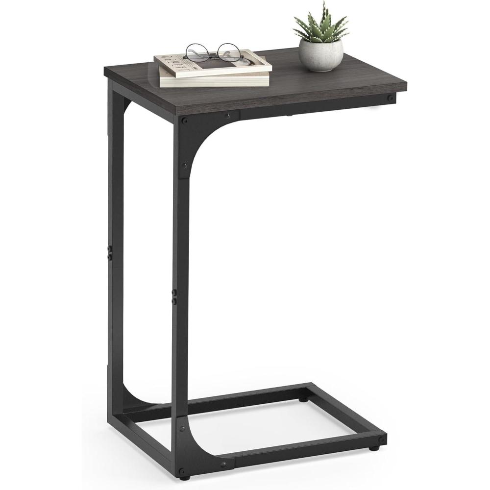 VASAGLE C Shape End Table, Small Coffee Table for Couch Or Sofa, Industrial Side Table in Living Room, Bedroom, 13.8 x 21.7 x 26 Inches, Rustic Brown and Black ULNT52BX(Greige Classic Black)