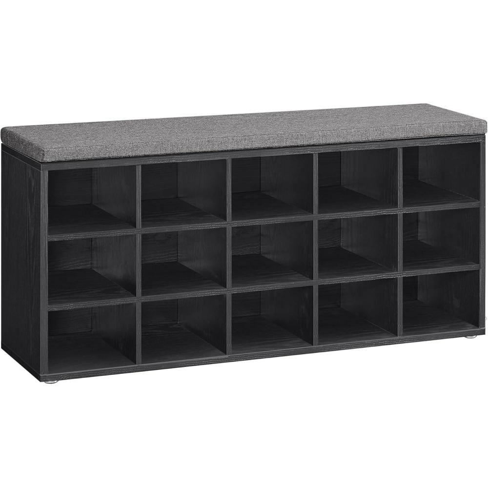 VASAGLE CUSTOS Collection – Shoe Bench, Storage Bench with Padded Seat, Entryway Bench with 10 Compartments, for Bedroom, 11.8 x 40.9 x 18.9 Inches, Cloud White and Dove Gray ULHS010W01(Ebony Black Slate Gray)