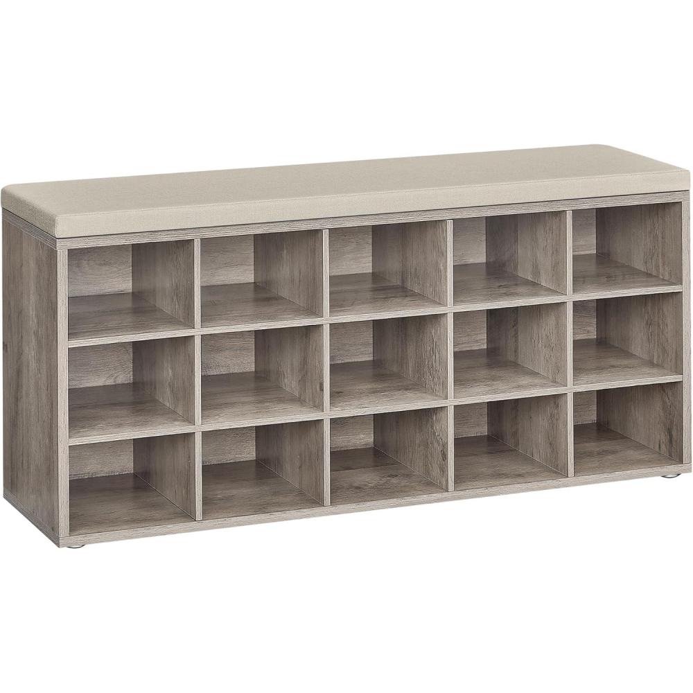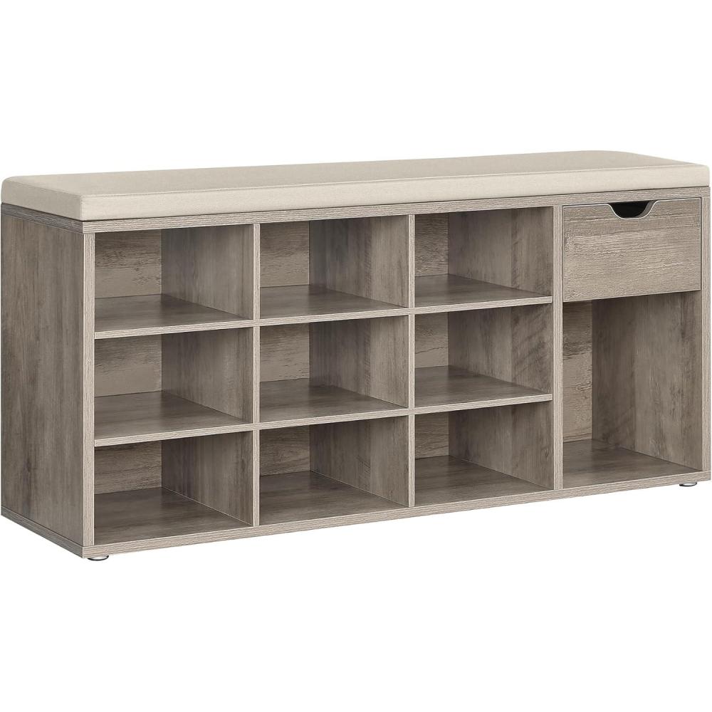 VASAGLE CUSTOS Collection – Shoe Bench, Storage Bench with Padded Seat, Entryway Bench with 10 Compartments, for Bedroom, 11.8 x 40.9 x 18.9 Inches, Cloud White and Dove Gray ULHS010W01(White Gray)
