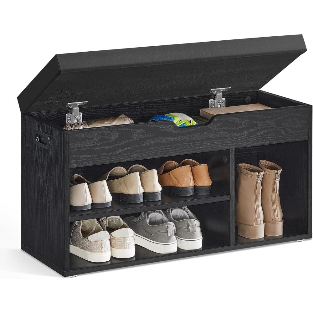 VASAGLE CUSTOS Collection – Storage Bench with Cushion, Shoe Bench, Padded Seat, Hidden Storage, Entryway, Hold up to 300 lb, 11.8 x 31.5 x 17.3 Inches, Ebony Black and Ink Black ULHS030B03(Ebony Black Ink Black)