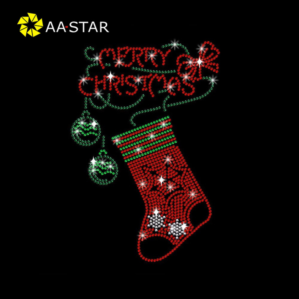High quality rhinestone christmas sock design iron on transfer